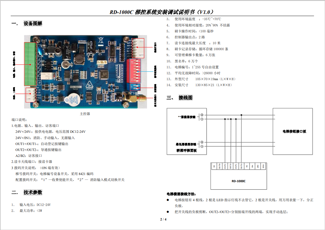 RD - 1 0 0 0 C 梯控系統(tǒng)安裝調(diào)試說明書